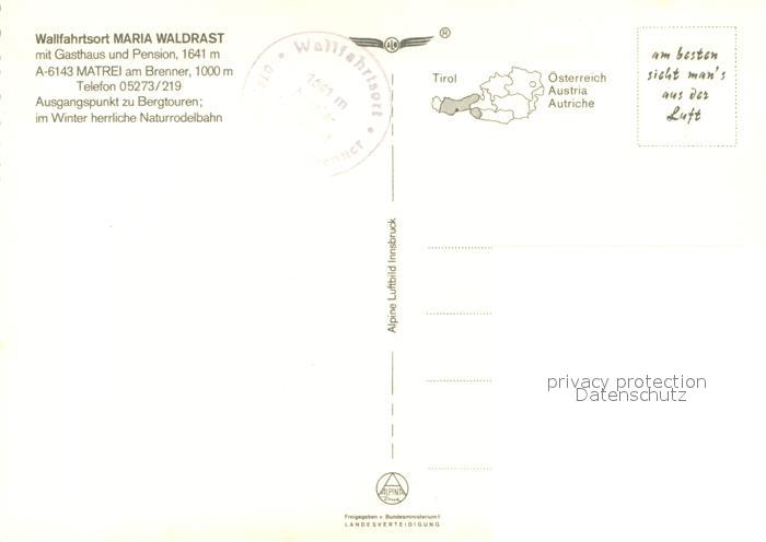 73336913 Matrei Brenner Maria Waldrast Gasthaus und Pension mit Serles Fliegeraufnahme postalisch nicht gelaufen Erhaltung siehe scans [WerneD78] KatCode: 11390332070327