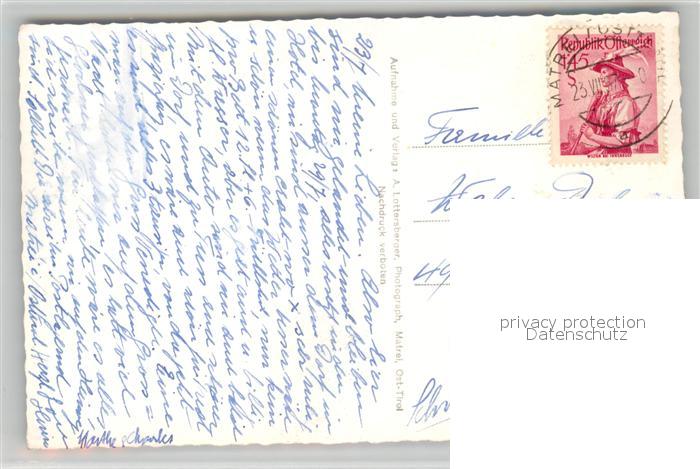 73365102 alte Postkarte Matrei Brenner mit Nussing Bretterwand und Kendlspitze postalisch gelaufen Erhaltung siehe scans [WerneD78] KatCode: 11390332070327