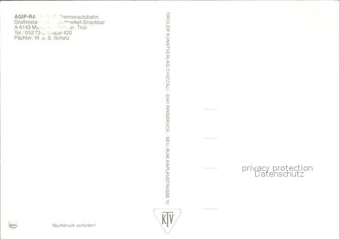 72022642 Matrei Brenner Rasthaus Agip Brennerautobahn postalisch nicht gelaufen Erhaltung siehe scans KatCode: 11390332070327