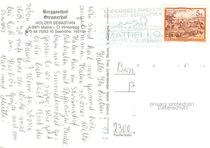 73760158 alte Postkarte Matrei Osttirol Berggasthof Strumerhof postalisch gelaufen Erhaltung siehe scans [WerneD78] KatCode: 11390333070717