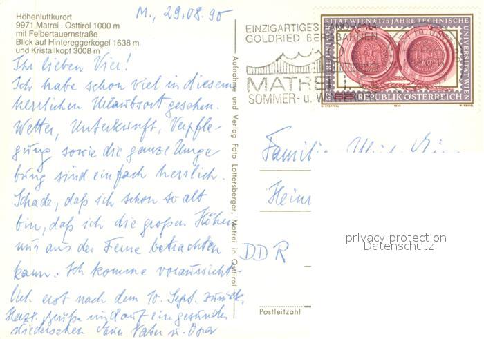 73712402 alte Postkarte Matrei Osttirol Felbertauernstrasse mit Hintereggerkogel und Kristallkopf postalisch gelaufen Erhaltung siehe scans [WerneD78] KatCode: 11390333070717