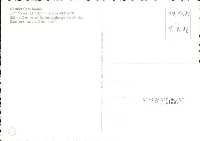 72443099 Matrei Osttirol Gasthof Sonne postalisch nicht gelaufen Erhaltung siehe scans KatCode: 11390333070717