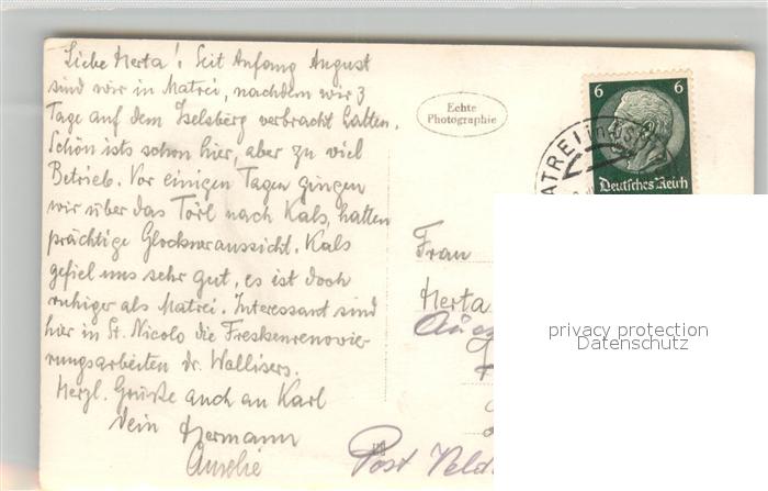 43107633 alte Postkarte Matrei Osttirol Gesamtansicht mit Alpenpanorama postalisch gelaufen Erhaltung siehe scans [FriedD77] KatCode: 11390333070717