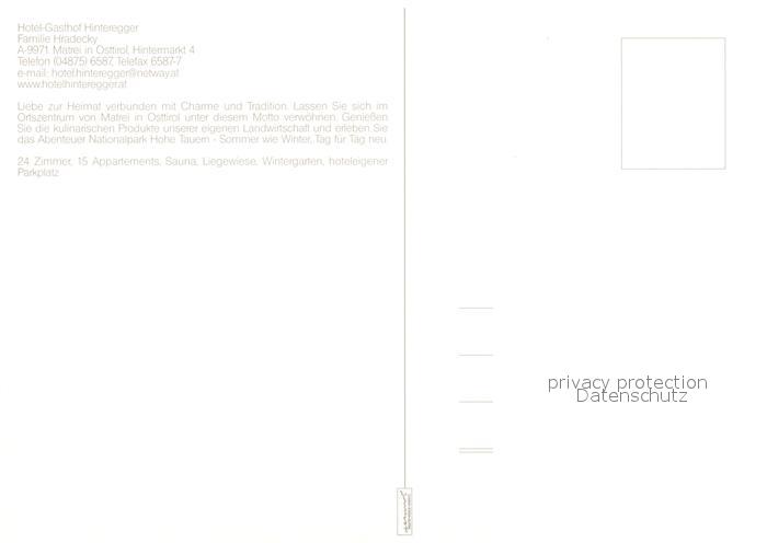 73157944 Matrei Osttirol Hotel Gasthof Hinteregger postalisch nicht gelaufen Erhaltung siehe scans [FriedD77] KatCode: 11390333070717