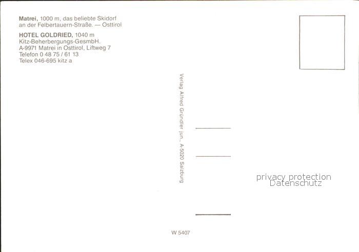 71926921 Matrei Osttirol Hotel Goldried Wintersportplatz Sessellift postalisch nicht gelaufen Erhaltung siehe scans KatCode: 11390333070717