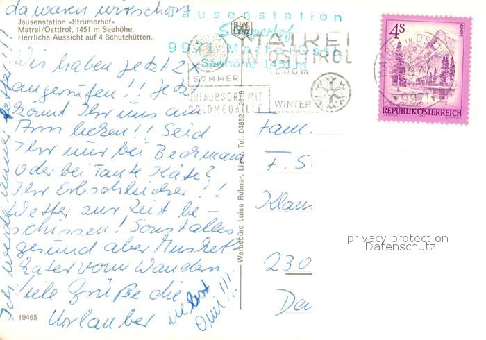 13234835 alte Postkarte Matrei Osttirol Jausenstation Strumerhof Landschaftspanorama Alpen postalisch gelaufen Erhaltung siehe scans [FriedD77] KatCode: 11390333070717