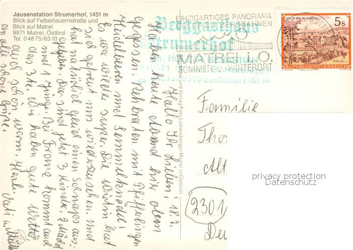 73760157 alte Postkarte Matrei Osttirol Jausenstation Strumerhof Terrasse postalisch gelaufen Erhaltung siehe scans [WerneD78] KatCode: 11390333070717
