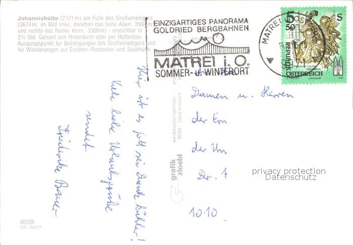 72373406 alte Postkarte Matrei Osttirol Johannishuette postalisch gelaufen Erhaltung siehe scans KatCode: 11390333070717