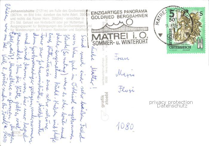 72375042 alte Postkarte Matrei Osttirol Johannishuette postalisch gelaufen Erhaltung siehe scans KatCode: 11390333070717