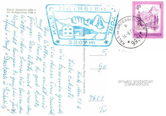 72672151 alte Postkarte Matrei Osttirol Kalsertoerl mit Grossglockner postalisch gelaufen Erhaltung siehe scans [WerneD78] KatCode: 11390333070717
