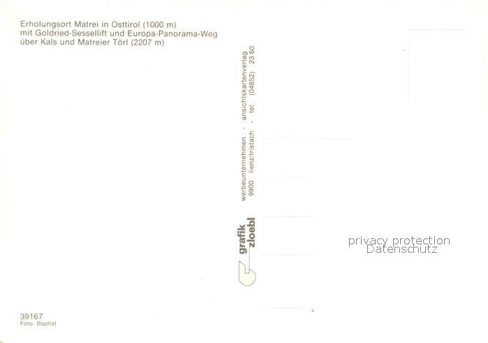 73573595 Matrei Osttirol Panorama Erholungsort mit Goldried Sessellift Europa Panoramaweg Alpen postalisch nicht gelaufen Erhaltung siehe scans [FriedD77] KatCode: 11390333070717