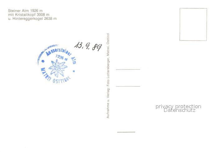 73339795 Matrei Osttirol Steiner Alm mit Kristallkopf und Hintereggerkogel postalisch nicht gelaufen Erhaltung siehe scans [FriedD77] KatCode: 11390333070717