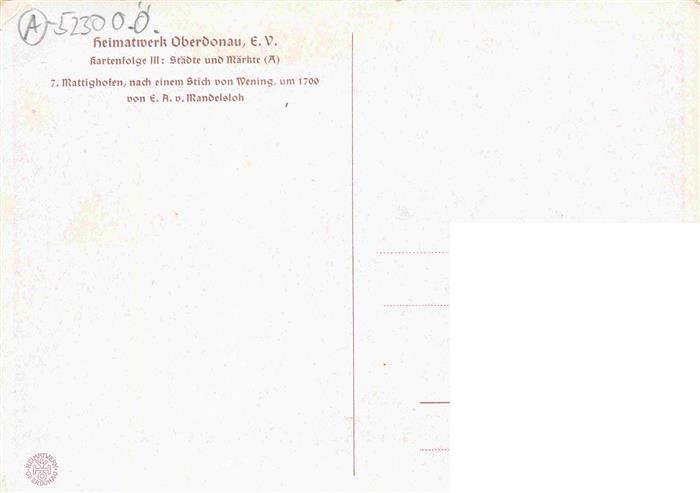 73972071 Mattighofen Innviertel Oberoesterreich AT Gesamtansicht Heimatwerk Oberdonau e.V. Kartenfolge III Staedte und Maerkte Stich von Wening Kuenstlerkarte postalisch nicht gelaufen Erhaltung siehe scans [FriedD77] KatCode: 11390311040421