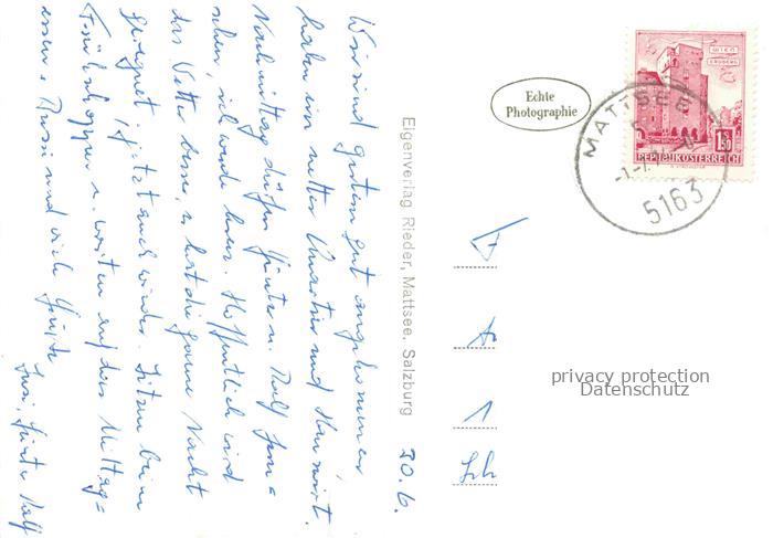 74156130 alte Postkarte Mattsee Salzburg AT Fliegeraufnahme postalisch gelaufen Erhaltung siehe scans [FriedD77] KatCode: 11390323050323