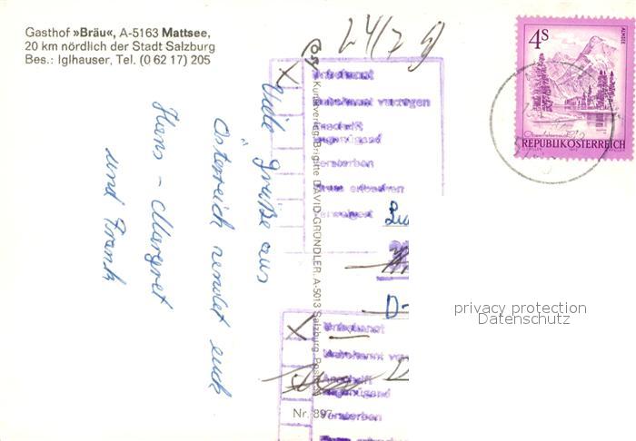 73054450 alte Postkarte Mattsee Salzburg Gasthof Braeu Liegewiese Panorama postalisch gelaufen Erhaltung siehe scans [KathaD81] KatCode: 11390323050323