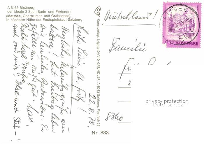 72693510 alte Postkarte Mattsee Salzburg Obertrumer See Grabensee postalisch gelaufen Erhaltung siehe scans [KathaD79] KatCode: 11390323050323