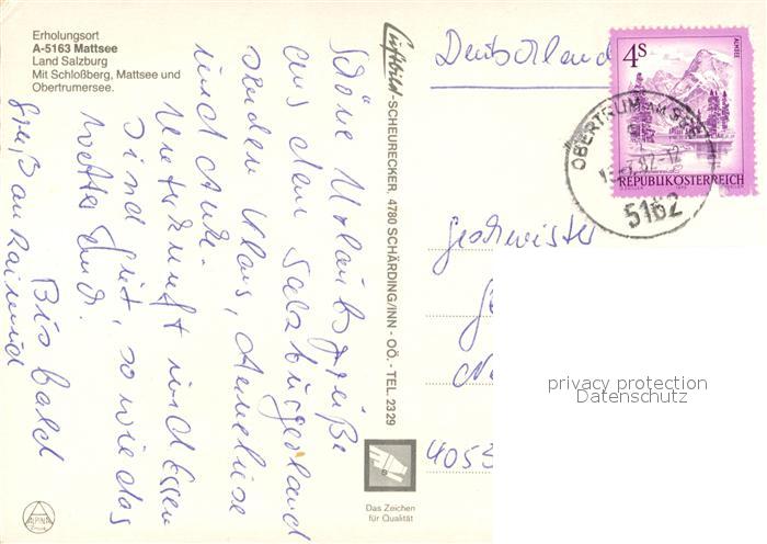 73211870 alte Postkarte Mattsee Salzburg Panorama Schlossberg Obertrumersee postalisch gelaufen Erhaltung siehe scans [FriedD77] KatCode: 11390323050323