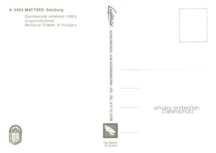 73124363 Mattsee Salzburg Ungarndenkmal postalisch nicht gelaufen Erhaltung siehe scans [KathaD81] KatCode: 11390323050323
