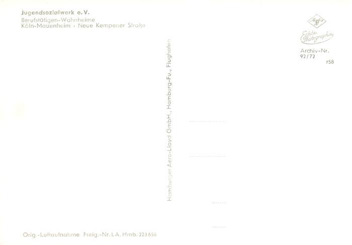 73874885 Mauenheim Koeln Jugendsozialwerk eV Berufstaetigen Wohnheime Fliegeraufnahme postalisch nicht gelaufen Erhaltung siehe scans [WerneD78] KatCode: 11110005315000