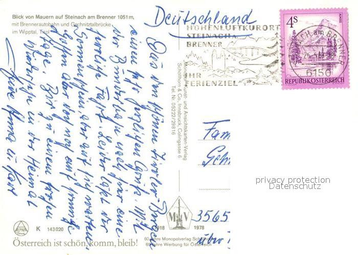 73246965 alte Postkarte Mauern Tirol Steinach Brennerautobahn Goeschnitztalbruecke postalisch gelaufen Erhaltung siehe scans [KathaD81] KatCode: 11390332070355