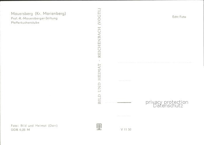 72115698 Mauersberg Mauersberger- Stiftung Pfefferkuchenstube postalisch nicht gelaufen Erhaltung siehe scans KatCode: 11110014181140