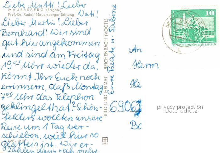 72637526 alte Postkarte Mauersberg Mauersberger-Stiftung postalisch gelaufen Erhaltung siehe scans [AndreD76] KatCode: 11110014181140