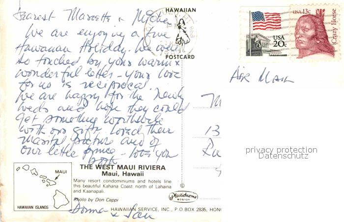 72756130 old postcard Maui Hawaii Fliegeraufnahme mit Strand postalisch gelaufen Erhaltung siehe scans [LiesaD40] KatCode: 14140130000000