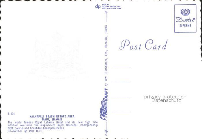 72332385 Maui Hawaii Kaanapali Beach Resort Area Hotel postalisch nicht gelaufen Erhaltung siehe scans KatCode: 14140130000000