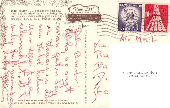 73716692 old postcard Maui Hawaii Maui Hilton Hotel Swimming Pool at Kaanapali Beach postalisch gelaufen Erhaltung siehe scans [FriedD77] KatCode: 14140130000000