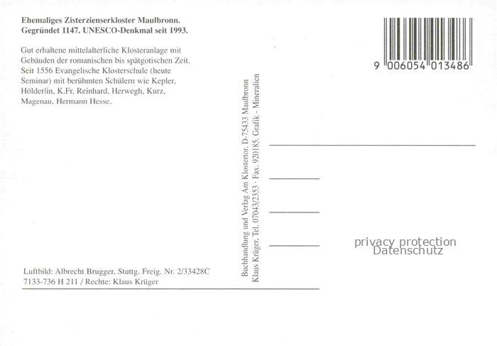 74085759 Maulbronn Ehem Zisterzienserkloster Fliegeraufnahme postalisch nicht gelaufen Erhaltung siehe scans [WerneD78] KatCode: 11110008236038