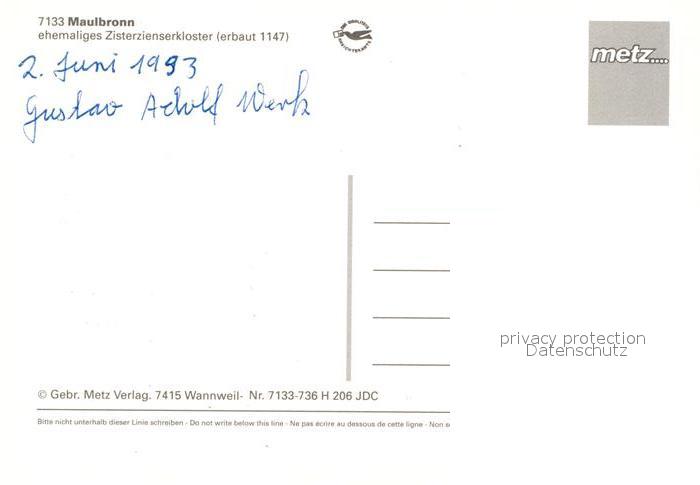 73182145 Maulbronn Ehem Zisterzienserkloster Fliegeraufnahme postalisch nicht gelaufen Erhaltung siehe scans [WerneD78] KatCode: 11110008236038