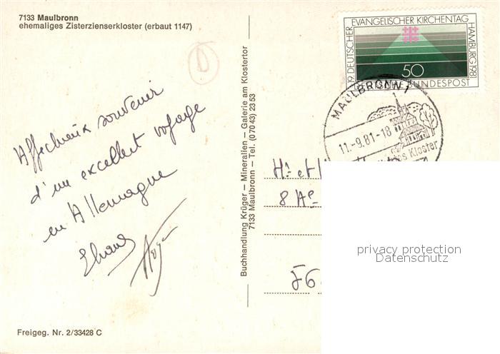 73600127 alte Postkarte Maulbronn Ehemaliges Zisterzienserkloster 12. Jhdt. Fliegeraufnahme postalisch gelaufen Erhaltung siehe scans [FriedD77] KatCode: 11110008236038
