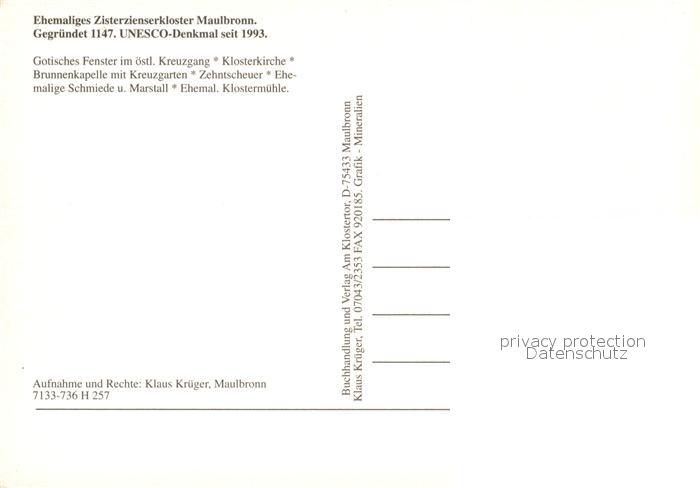 73030465 Maulbronn Ehemaliges Zisterzienserkloster postalisch nicht gelaufen Erhaltung siehe scans [KathaD81] KatCode: 11110008236038