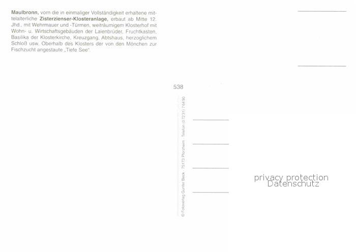 72752677 Maulbronn Fliegeraufnahme mit Zisterzienser-Klosteranlage postalisch nicht gelaufen Erhaltung siehe scans [LiesaD40] KatCode: 11110008236038