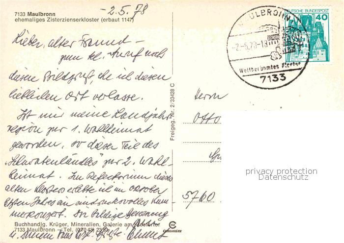 72837399 alte Postkarte Maulbronn Fliegeraufnahme Zisterzienserkloster postalisch gelaufen Erhaltung siehe scans [NatalD47] KatCode: 11110008236038