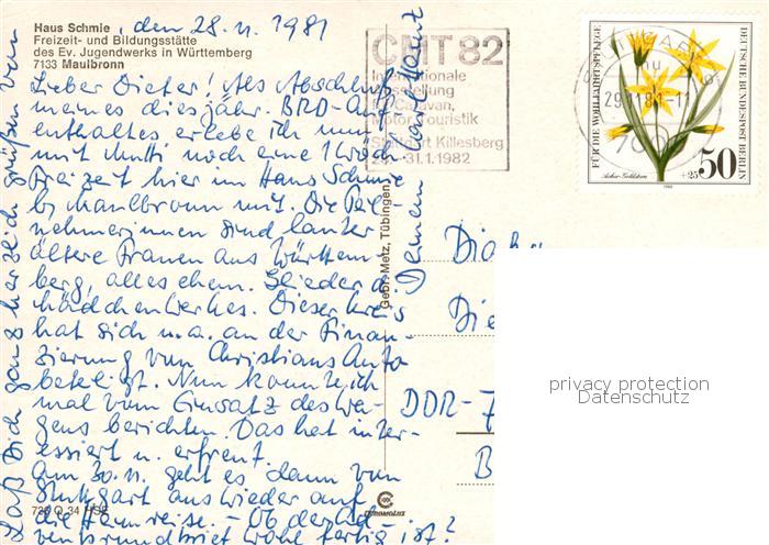 73834630 alte Postkarte Maulbronn Haus Schmie Freizeit und Bildungsstaette postalisch gelaufen Erhaltung siehe scans [FriedD77] KatCode: 11110008236038