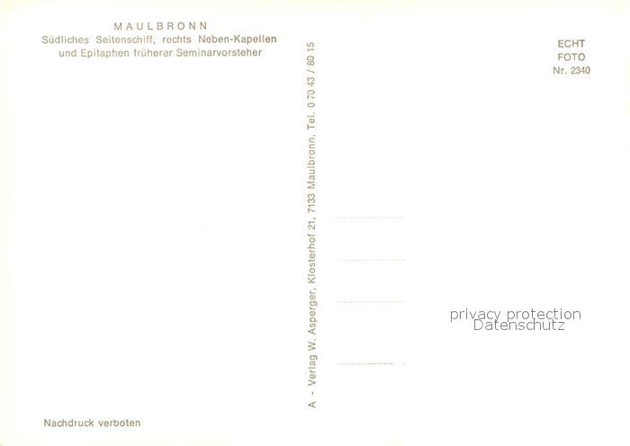 72984010 Maulbronn Kirche Suedl Seitenschiff Nebenkapellen und Epitaphen postalisch nicht gelaufen Erhaltung siehe scans [WerneD78] KatCode: 11110008236038