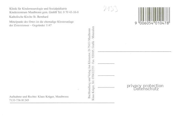 74054762 Maulbronn Klinik Katholische Kirche St. Bernhard postalisch nicht gelaufen Erhaltung siehe scans [FriedD77] KatCode: 11110008236038