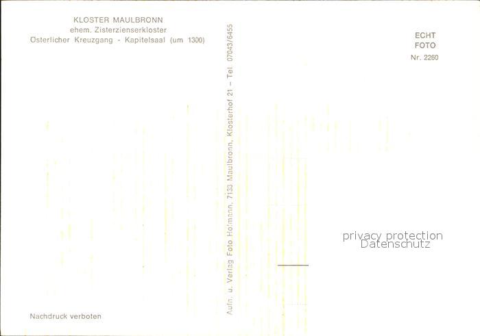72356813 Maulbronn Kloster ehem. Zisterzienserkloster oesterlicher Kreuzgang Kapitelsaal um 1300l postalisch nicht gelaufen Erhaltung siehe scans KatCode: 11110008236038