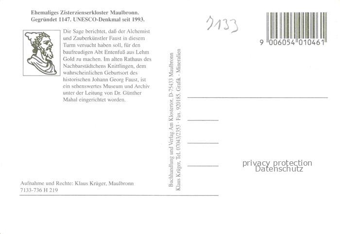 74054763 Maulbronn Kloster ehemaliges Zisterzienserkloster Turm postalisch nicht gelaufen Erhaltung siehe scans [FriedD77] KatCode: 11110008236038