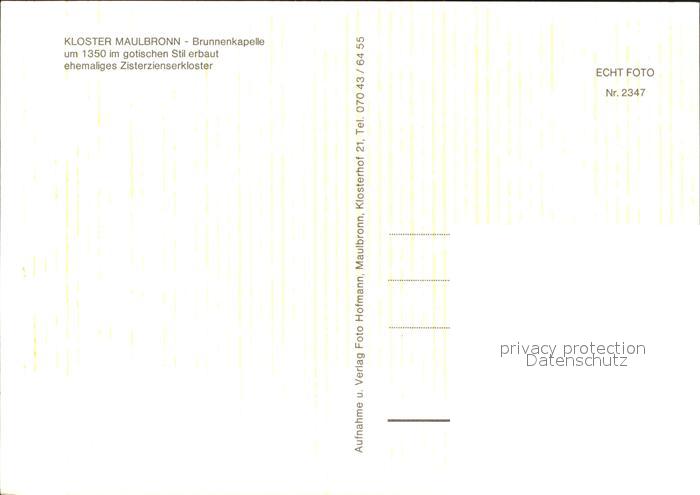 72319758 Maulbronn Kloster Maulbronn Brunnenkapelle postalisch nicht gelaufen Erhaltung siehe scans KatCode: 11110008236038