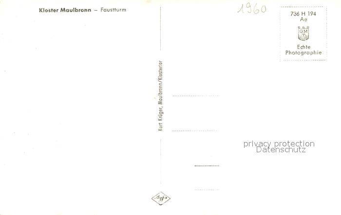 72916650 Maulbronn Kloster Maulbronn Faustturm postalisch nicht gelaufen Erhaltung siehe scans [PaolaD17] KatCode: 11110008236038