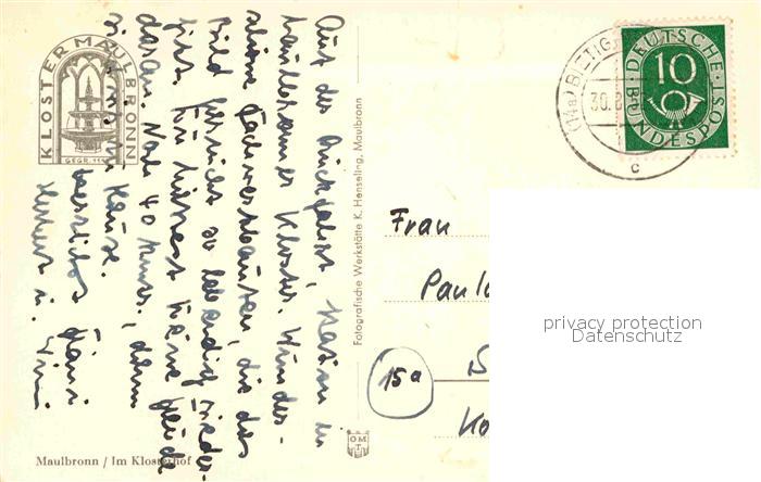 72805746 alte Postkarte Maulbronn Klosterhof postalisch gelaufen Erhaltung siehe scans [FriedD77] KatCode: 11110008236038