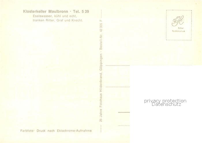 73086664 Maulbronn Klosterkeller postalisch nicht gelaufen Erhaltung siehe scans [NatalD47] KatCode: 11110008236038