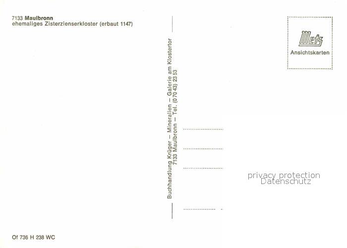 72846711 Maulbronn Zisterzienserkloster postalisch nicht gelaufen Erhaltung siehe scans [KathaD81] KatCode: 11110008236038