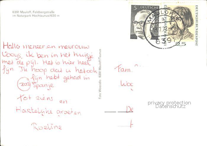 72299164 alte Postkarte Mauloff Feldbergstrasse Naturpark Hochtaunus postalisch gelaufen Erhaltung siehe scans KatCode: 11110006434013