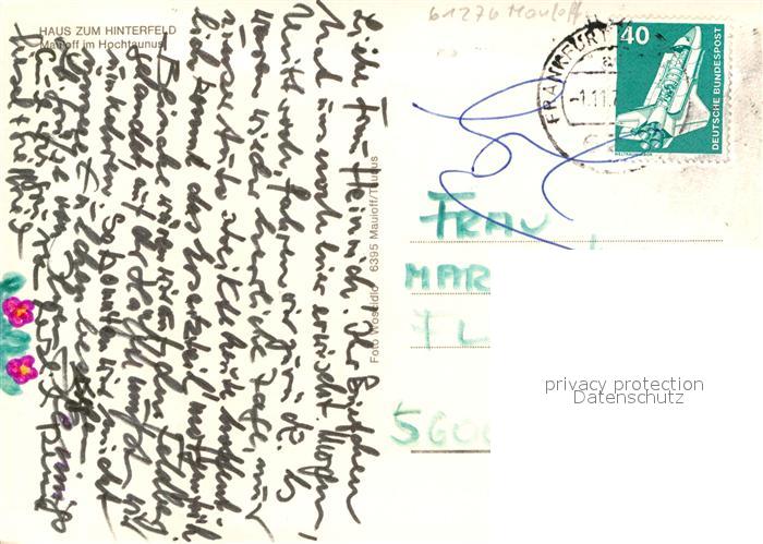 72952638 alte Postkarte Mauloff Haus zum Hinterfeld postalisch gelaufen Erhaltung siehe scans [FriedD77] KatCode: 11110006434013