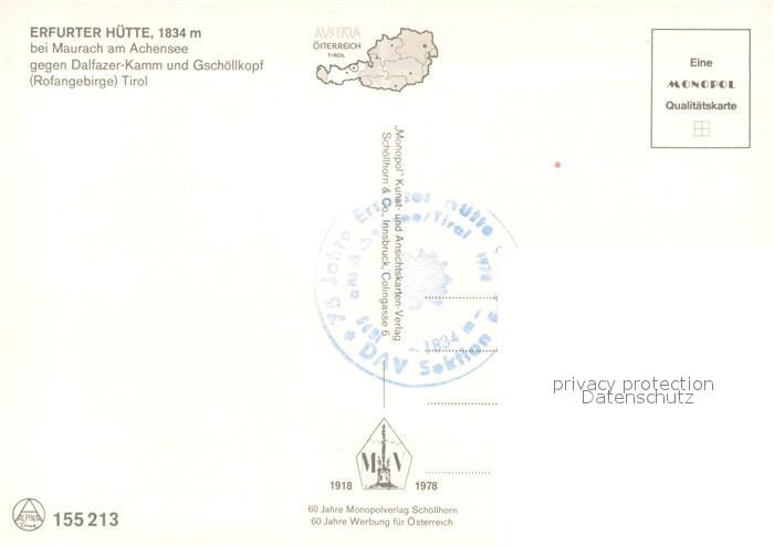 73236788 Maurach Achensee Erfurter Huette postalisch nicht gelaufen Erhaltung siehe scans [KathaD81] KatCode: 11390335070907