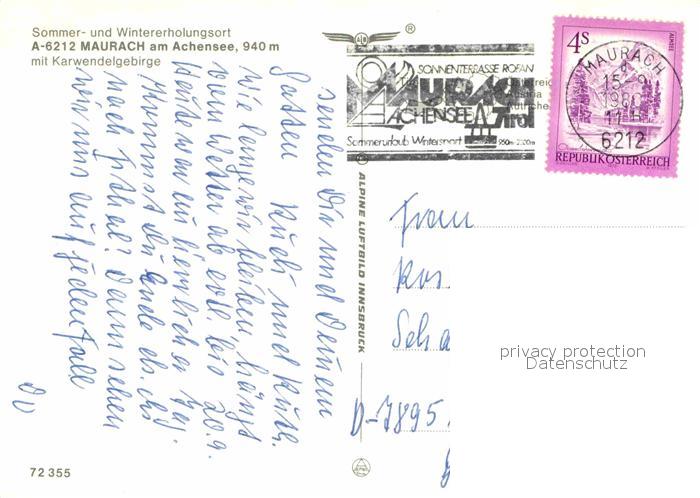72900147 alte Postkarte Maurach Achensee Fliegeraufnahme mit See und Karwendelgebirge postalisch gelaufen Erhaltung siehe scans [LiesaD40] KatCode: 11390335070907
