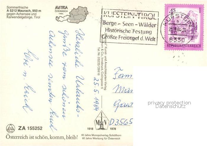 73246969 alte Postkarte Maurach Achensee Fliegeraufnahme Panorama postalisch gelaufen Erhaltung siehe scans [KathaD81] KatCode: 11390335070907